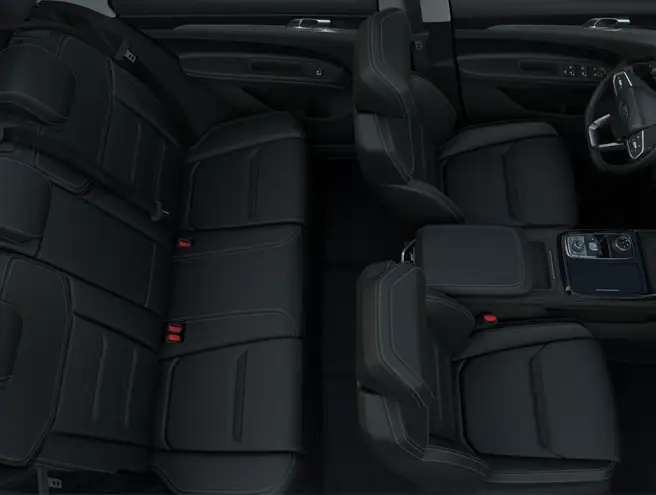 Ghế bọc da sang trọng, không gian rộng rãi. Ford Territory mới mang đến cảm giác thoải mái, êm ái suốt hành trình, tiên phong trong triết lý thiết kế mới của Ford.